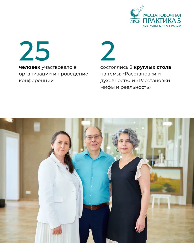 Отметим, что в организации и проведении конференции приняли участие 25 человек, а в рамках мероприятия состоялось 2 круглых стола на темы: «Расстановки и духовность» и «Расстановки: мифы и реальность».