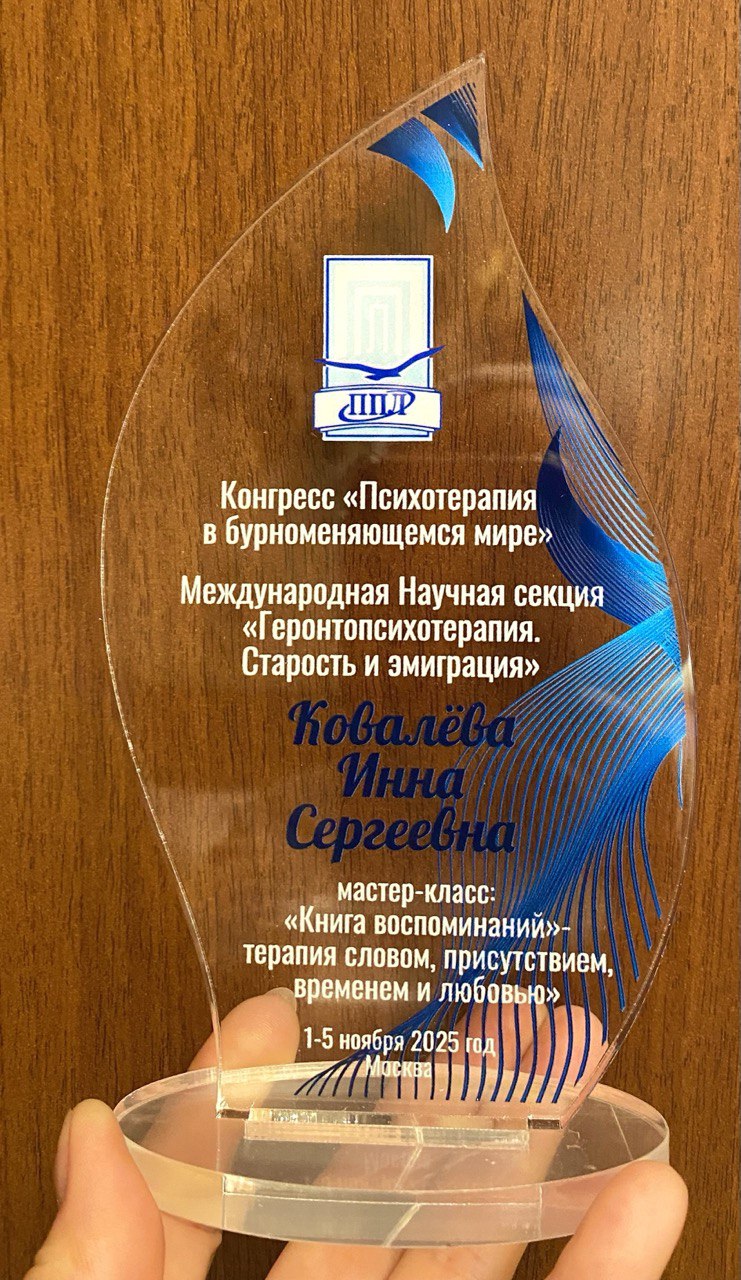 За глубокое понимание важности просвещения и образования в вопросах старшего возраста. За данную возможность профессионалам познавать, совершенствоваться, помогать нуждающимся людям, их близким, специалистам, оказавшимся в сложной ситуации встречи со старостью, особенно патологической. За устремление растить новые высокопрофессиональные кадры, объединять их, развивать психологию и психотерапию в России. Это дарит веру в то, что болеющий человек не останется один на один со своей проблемой.